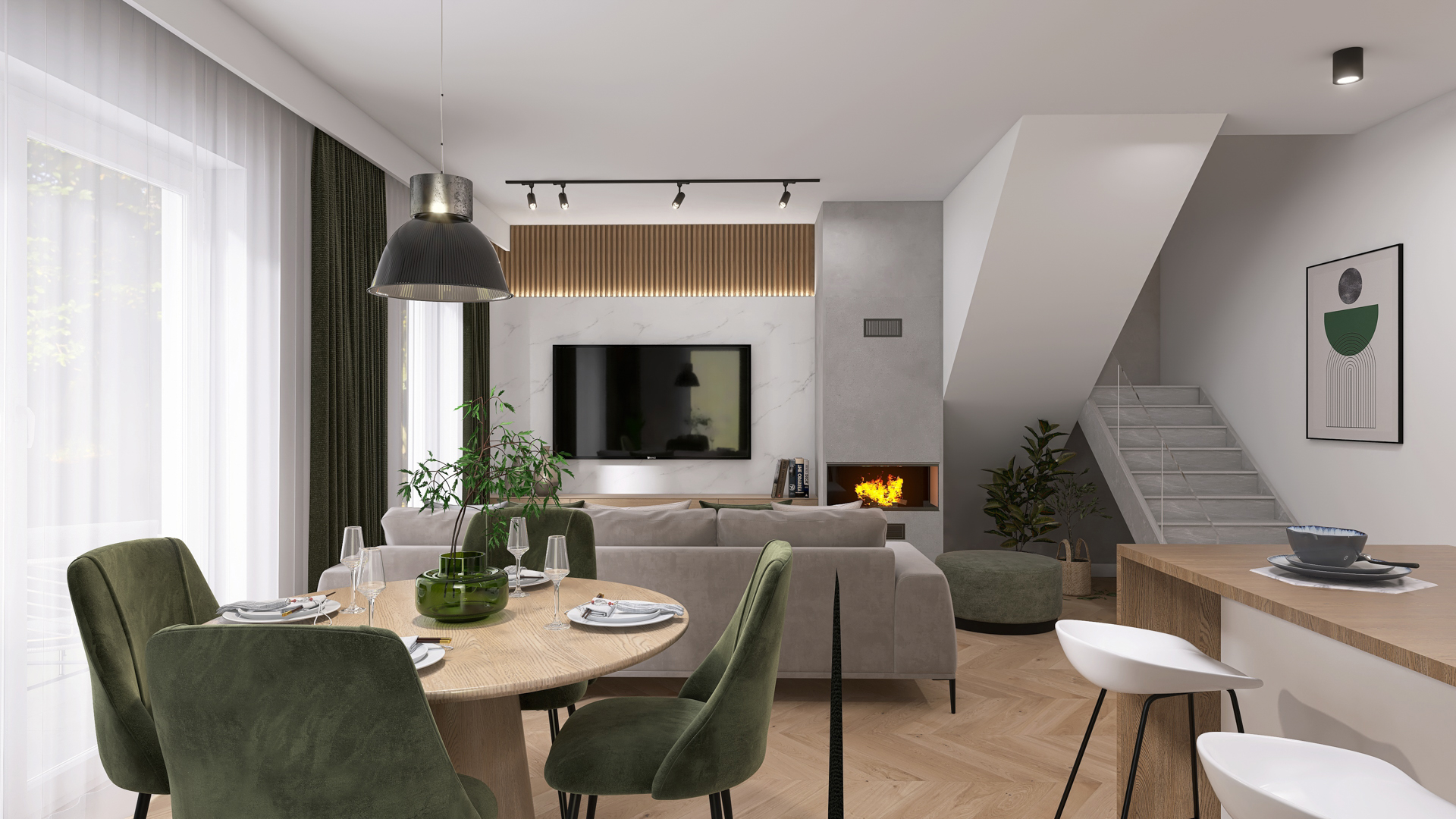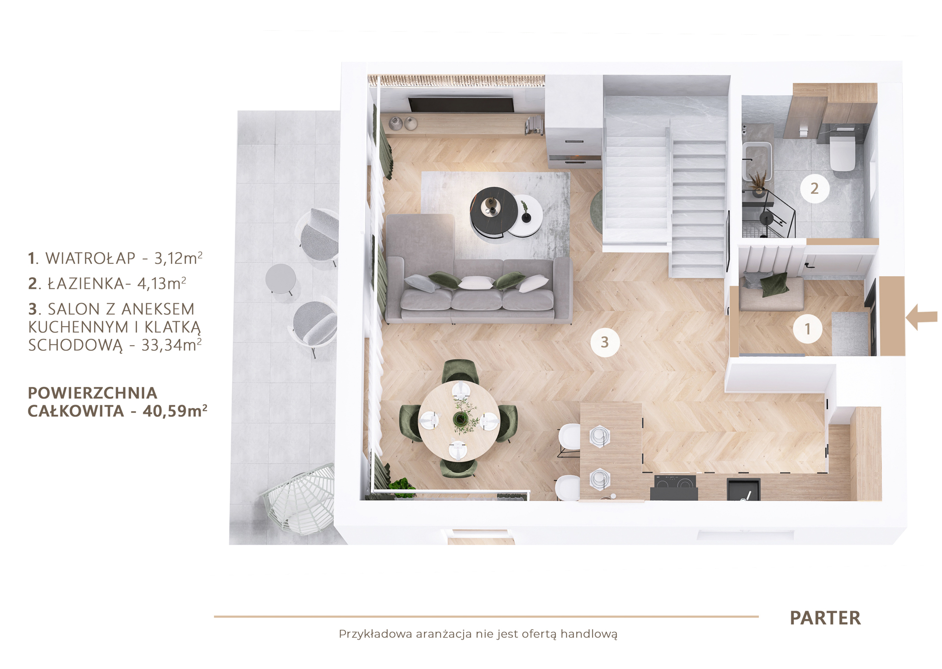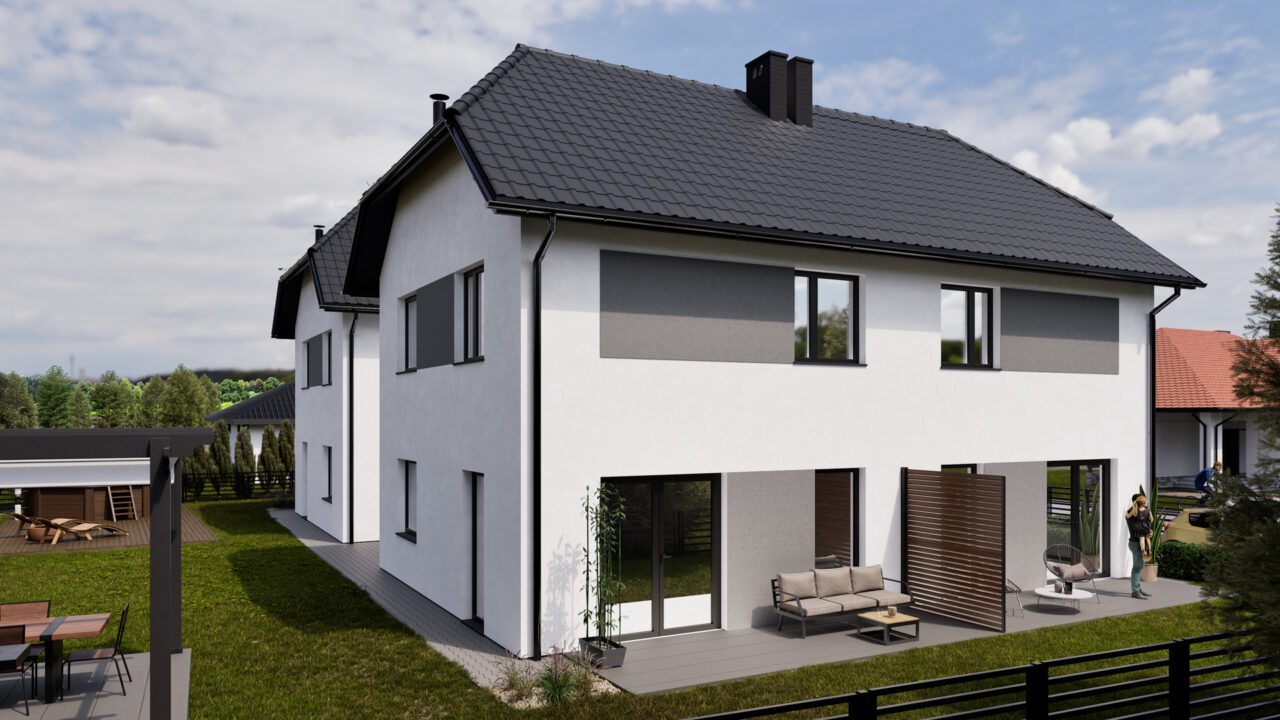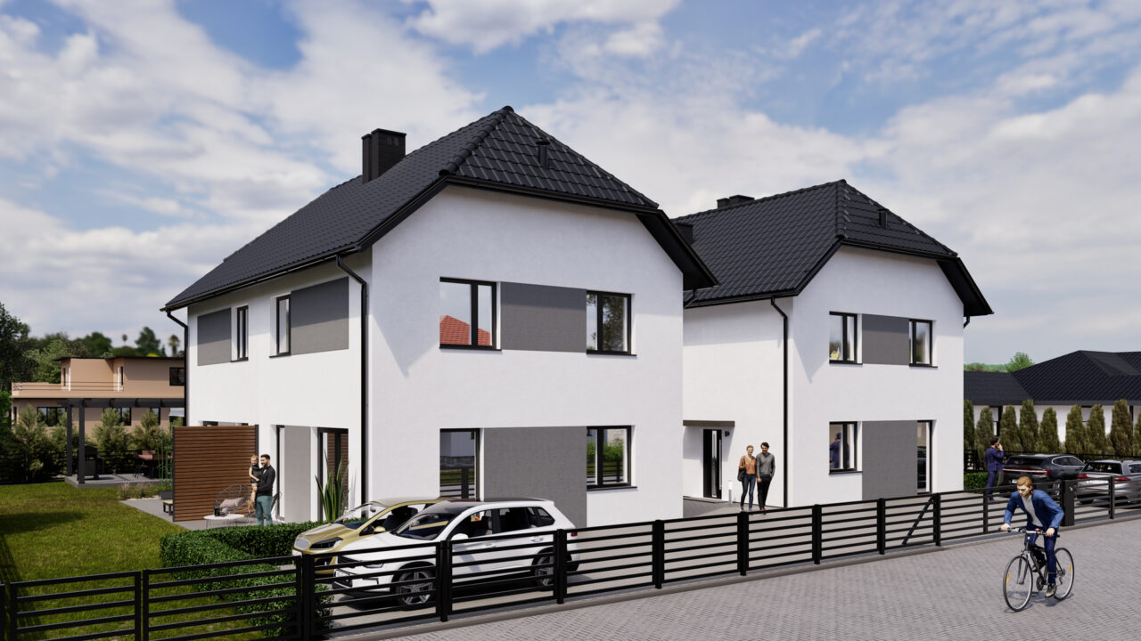Do każdego domu przydzielone są dwa miejsca postojowe.